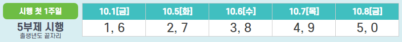 ■ 시행 첫 1주일은 출생연도 뒷자리 숫자에 따라 5부제로 운영한다.
