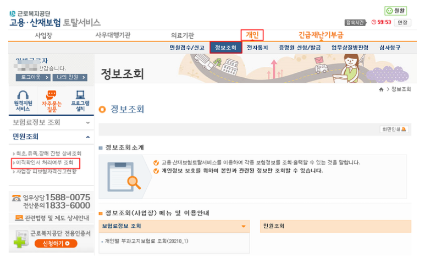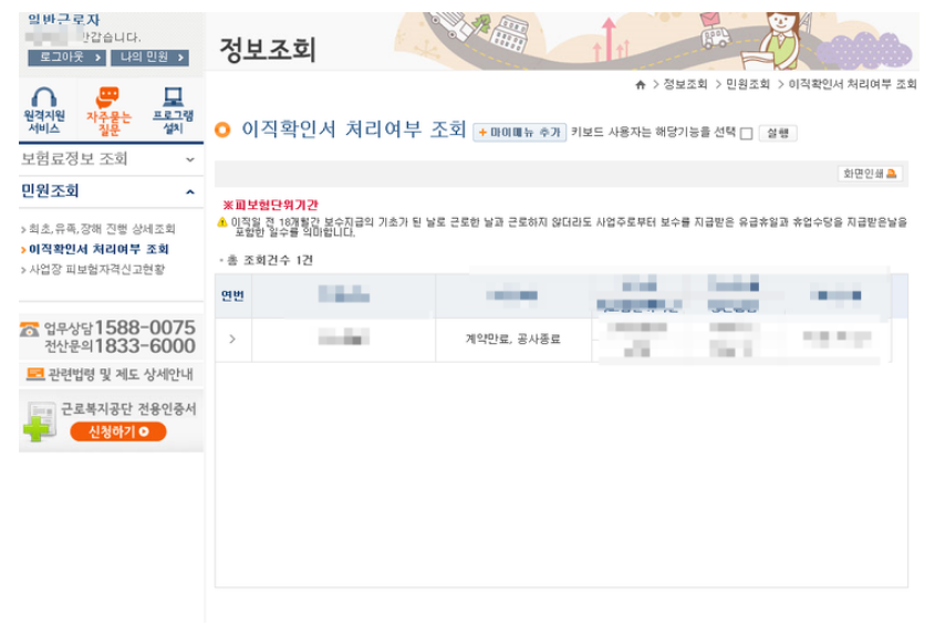 - 고용보험금 상실신고 및 이직처리 상태를 확인한다.