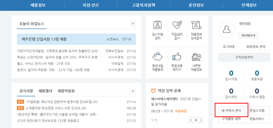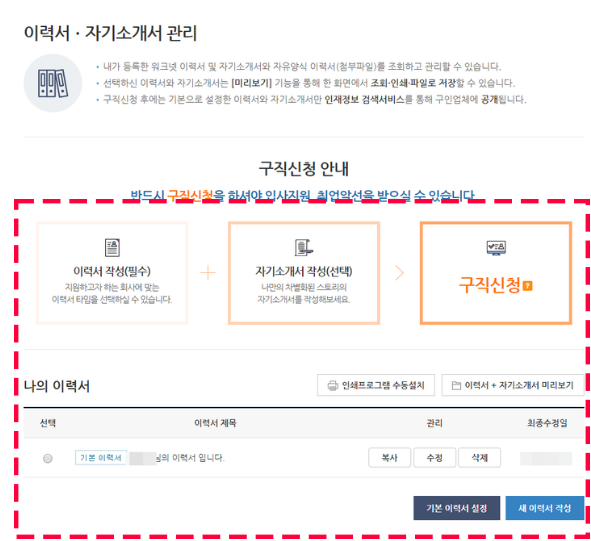 - 내 이력서 관리를 클릭한다.