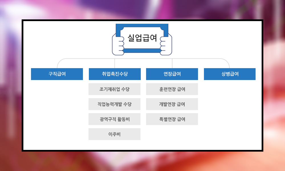 크게 구직급여와 취업촉진수당으로 나누어져 있으며 아래는 유의해야 할 사항이다.