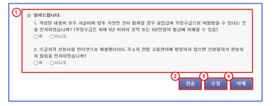 - 실업인정 대상기간 중 일용근로, 회의 참석 등 일시적인 소득이 있을 경우 반드시 체크하고 아래 내용 확인한다.