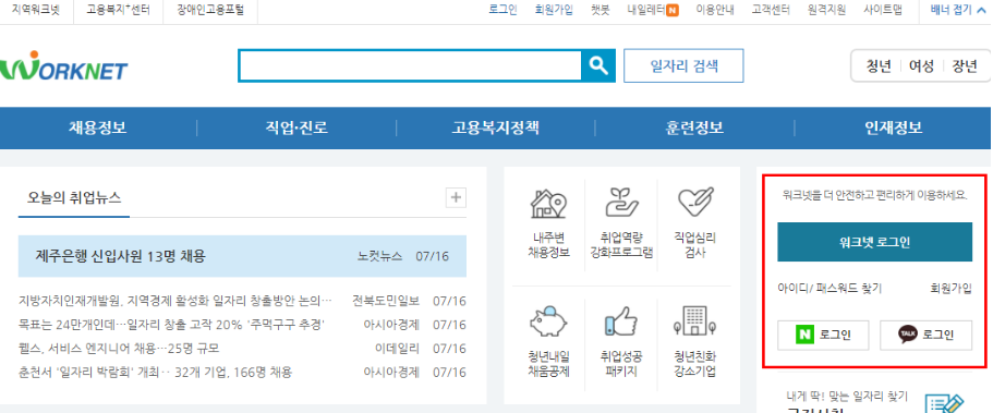 - 워크넷 사이트 접속 > 가입한다.