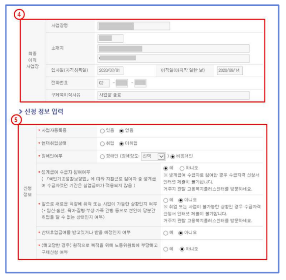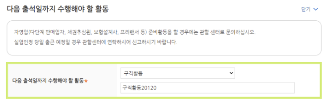 - 구직활동이 있을 경우 체크한다.