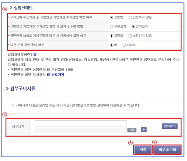 - 수급자격 신청정보를 입력한다. 첨부 구비서류는 정보를 필요에 따라 입력한다.