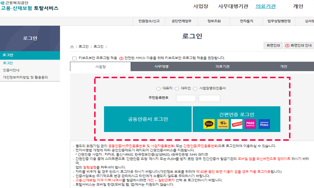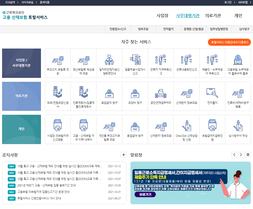 - 고용산재토탈서비스 사이트 접속한다.