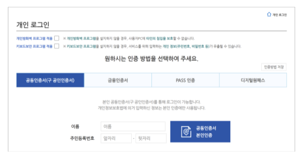 - 공인인증서 로그인, 개인서비스를 조회한다.